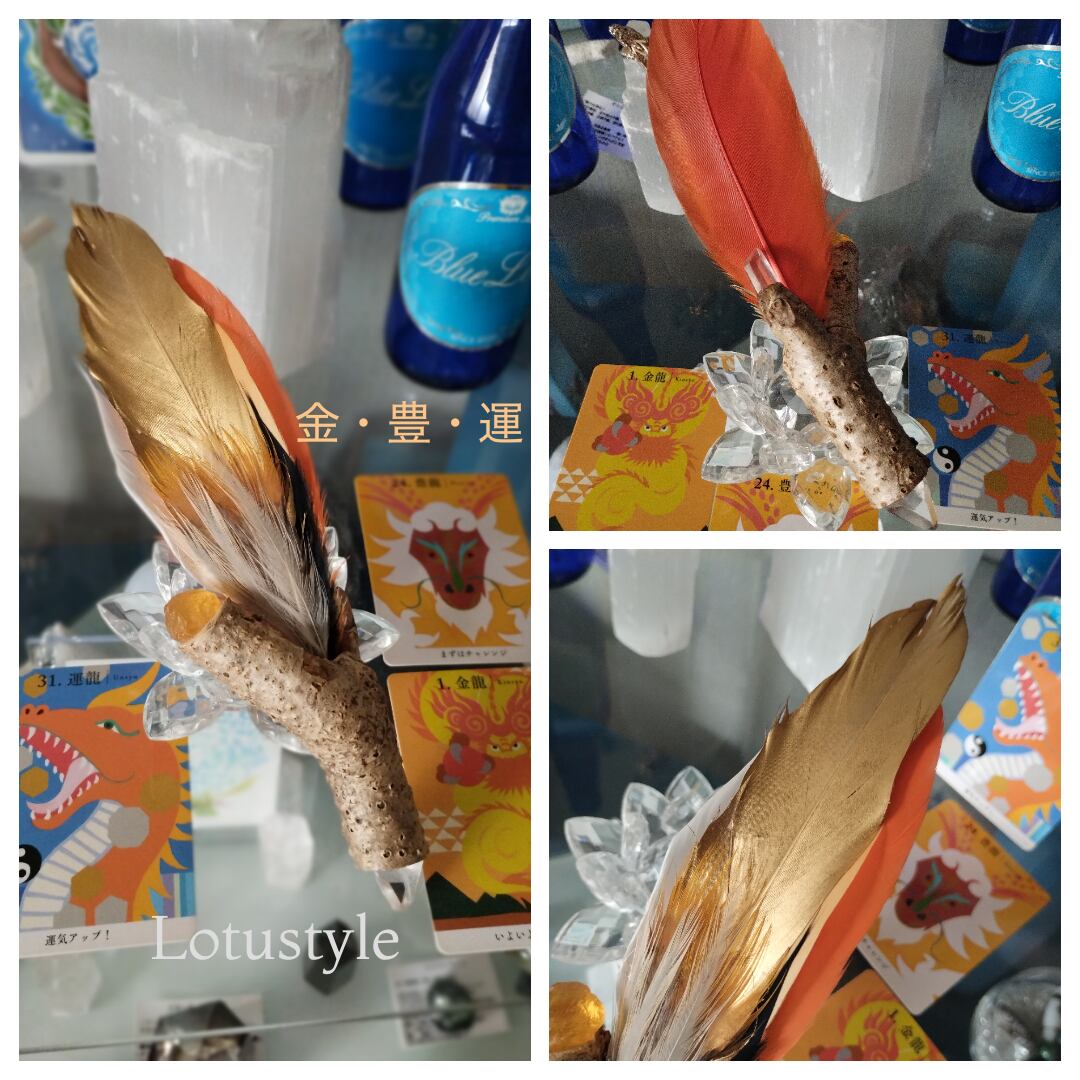 全長:約24,6cm(フェザー部分約17cm)、レムリアンぽい方の水晶:約2,6cm、グリップエンドの水晶:1,4cm、コーパル、(グリップの木:調査中)
